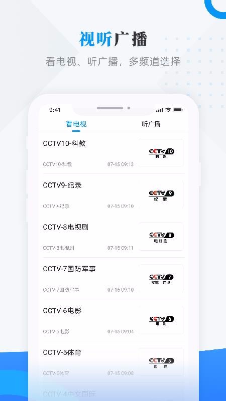 关注党建相关公告,并支持在线选择喜爱的电视节目和观看电视剧。还整合了更多的广播收听资源。