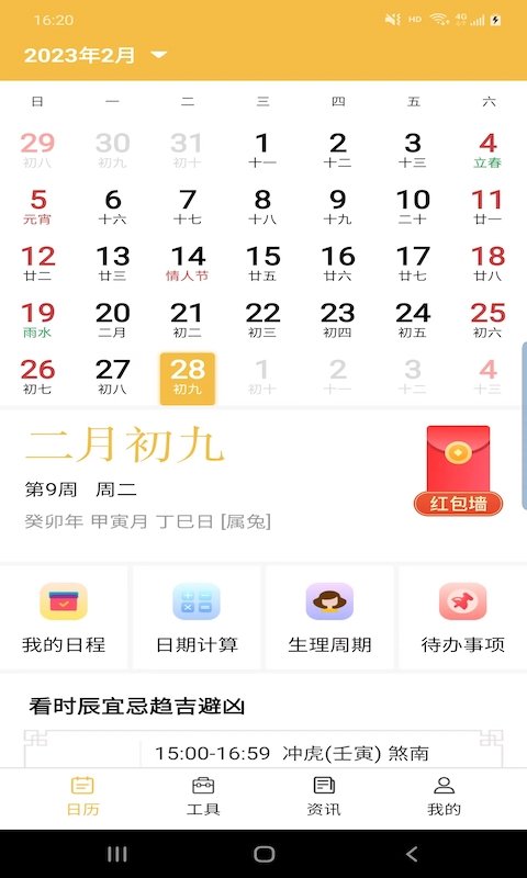 1、日历:把握生肖吉日、生肖运势、节日节气,随时避开霉运;