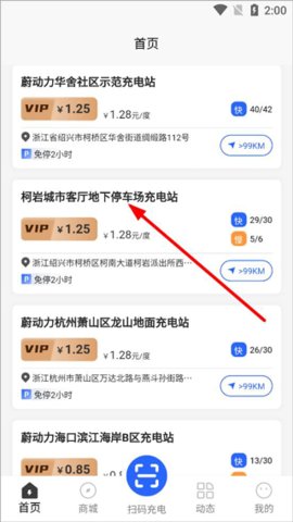 2、选择站点将为您仔细推荐充电地点,并推荐高质量的充电地点。