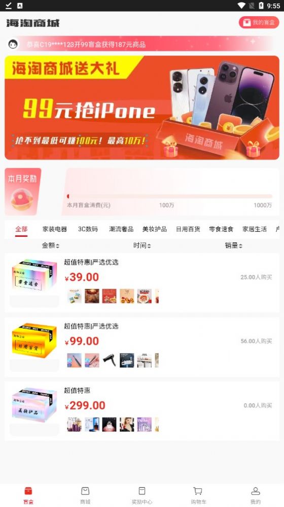 1、直接上线就可以获取丰富的福利,专业的购物平台,多种盲盒随机选择;