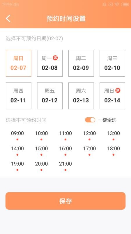 2、所有者可以根据自己的时间表设置预订服务的时间段,设置无法预订的日期和时间段,并立即保存。