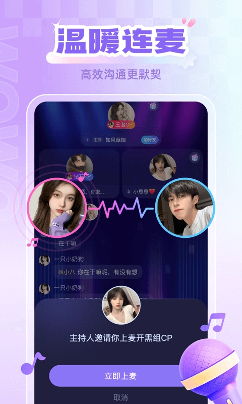 2、一键组队连麦开黑,边玩边聊,遇见心动的声音;