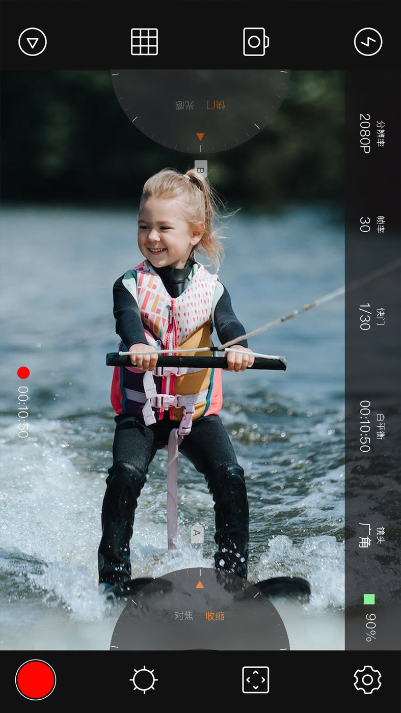 2、手动,半手动或自动控制曝光,闪光灯,对焦,ISO,快门速度,手电筒和白平衡。