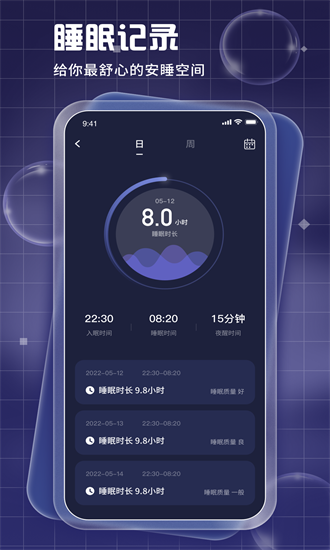 2、睡眠管家每次都能快速掌握你的睡眠数据,从而快速解决睡前的各种冥想,帮助你入睡。