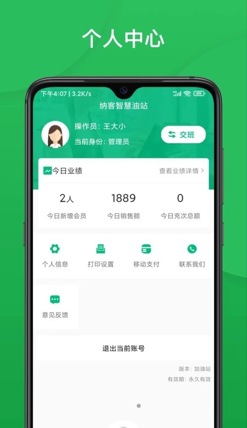 纳客智慧油站app特色纳客智慧油站提供了会员管理功能,包括会员注册,积分管理,优惠券发放等,为油站管理者提供了更好的会员服务。提供了在线客服功能,方便用户咨询,反馈和投诉,提高了油站服务质量和用户满意度。
