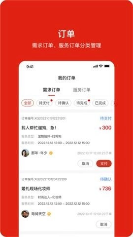 根据生活需要购买对应的服务,例如上门宠物喂养、代遛狗、摄影等各种服务。