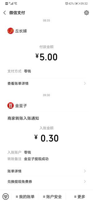 金豆子第一次达到0.3元时可以提现现金,微分0.5元,1元,5元和10元后可以提现。