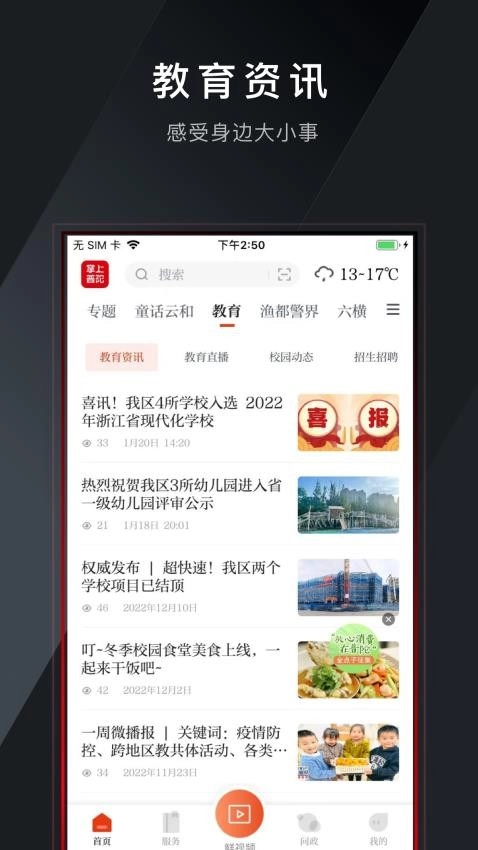 这里每天会更新国家大事和由普陀区广播电视台记者对新闻专题的实时专访,或者来自民众的新闻投稿等。让用户足不出户就能知晓舟山的大小事。在这款软件中,你可以看电视、听广播,还可以不定期参加有舟山市普陀区广播电视台举办的一些特色活动,让你的日子过得更加有意思。