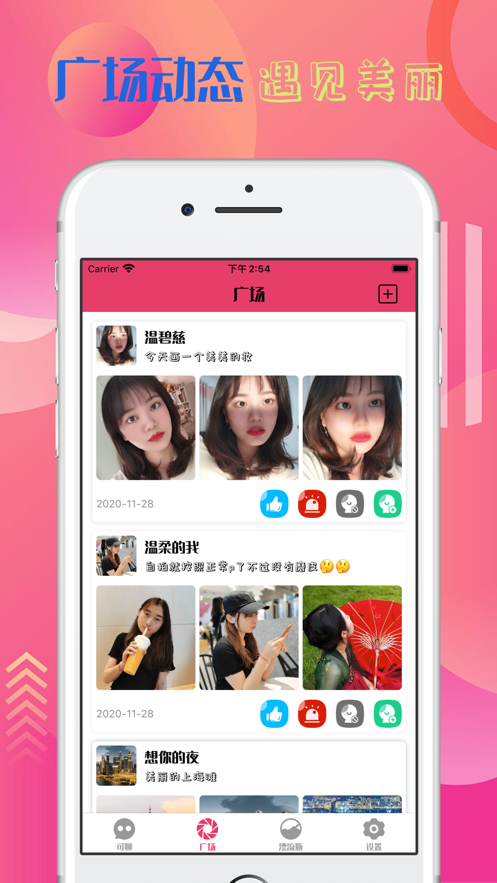 可聊社交app是一款优质的同城社交软件,根据用户的实时定位来智能化的切换到相应的城市,超多高颜值的小哥哥和小姐姐就在您的附近,线上一键就可以开撩,开启自己的缘分之旅,能够轻松的完成脱单,认识到很多志趣相投的人,扩大自己的社交圈子!