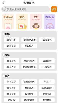 实用的恋爱沟通话术app,用户可以在线搜索最佳的答复,会有诸多的话术为您提供,在线可以学习了解到相关的聊天技巧!