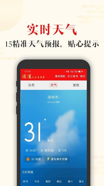 功能强大的移动应用程序,集天气预报、日历、农历、黄历等多种实用功能于一体