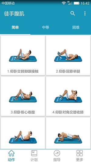 1、徒手腹肌包括50多个动作,从简单、中等到困难,