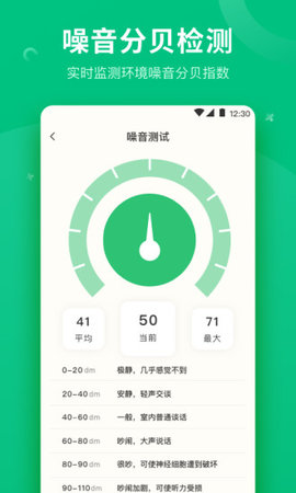 2、给您实体噪音计的使用体验,随时随地检测您身边的噪音分贝情况。