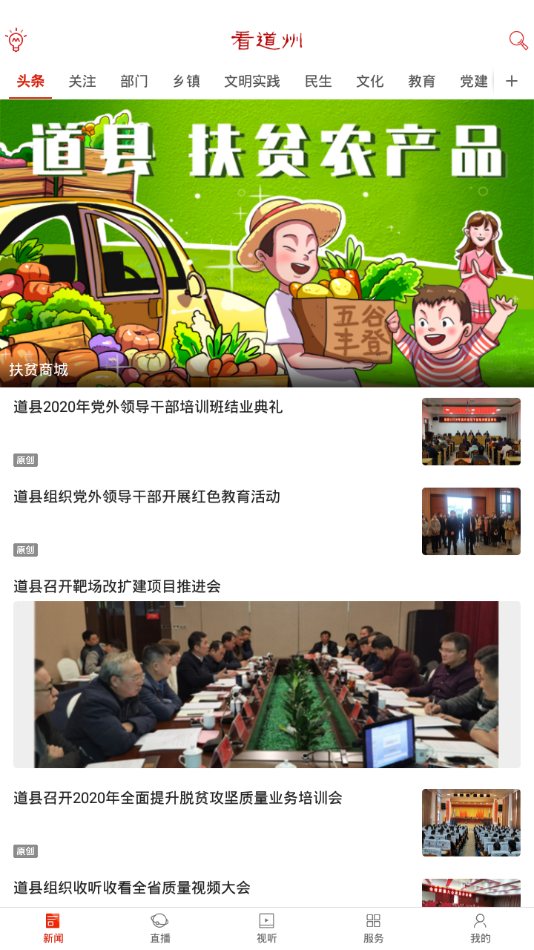 1、专为道县制作的融媒体移动平台,平台拥有新闻,直播,视听,服务等等板块内容;