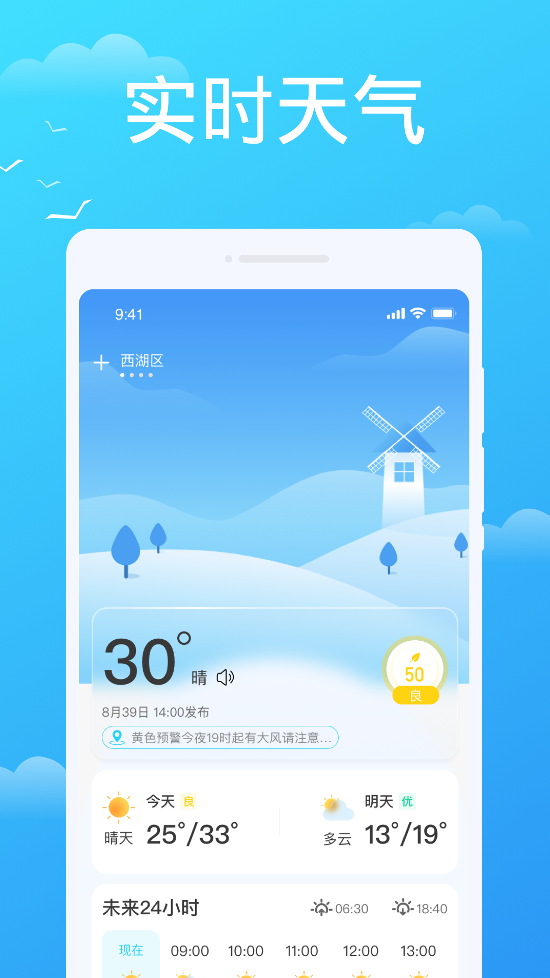 界面风格自由搭配:可自定义颜色,天气背景图