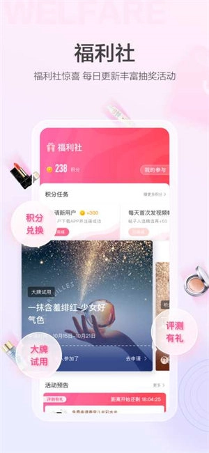 各种美妆大牌不花钱免费用,每天更新超多精彩抽奖活动,一键拍照试妆。快来美的你体验更多精彩吧!