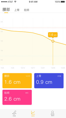 【变化趋势曲线图】提供脂肪厚度变化趋势曲线图,跟踪胖瘦变化