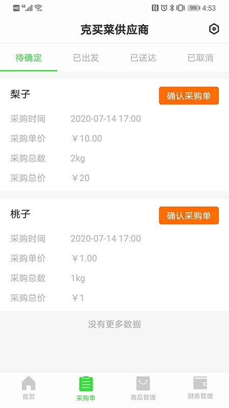 2、订单详情查看,当有了新的采购单之后能够对其采购商品目录以及数量等进行了解;