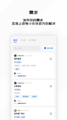 1、用户可以通过互岛APP找到自己需要的工作或者合作伙伴。