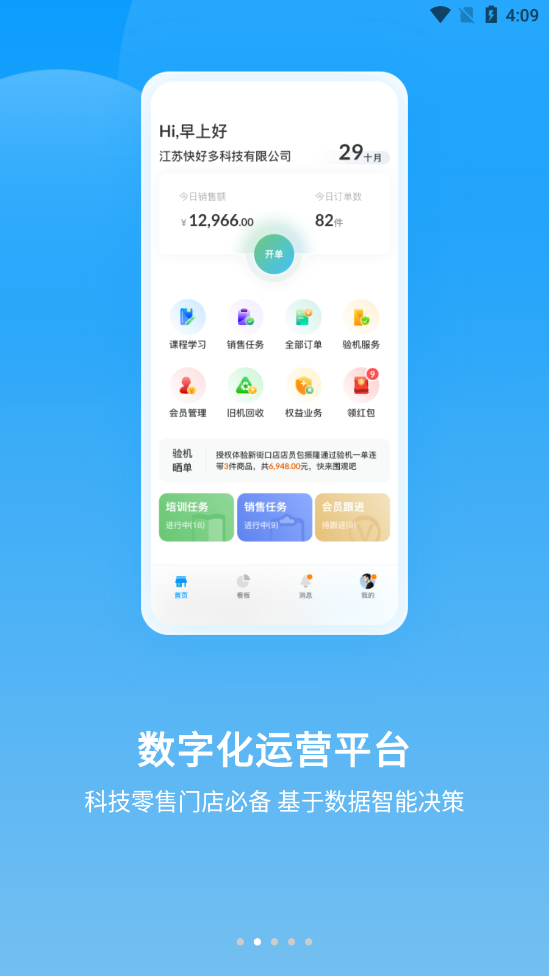 【销售数据可视化】 新增数据中心,老板可实时查看门店及店员销学习/销售/任务数据,并根据数据精准驱动运营决策。 我们以让零售经营更简单为使命,以数字化运营方式为核心,以科技零售多品类运营需求为导向,不断帮助实体零售运营升级,提高零售经营效率、提升门店销售能力。
