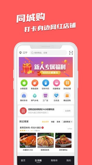 1、【同城购】网罗周边各类中餐、西餐、烘焙、水果、鲜花、超市购物,便捷生活,一手掌握!