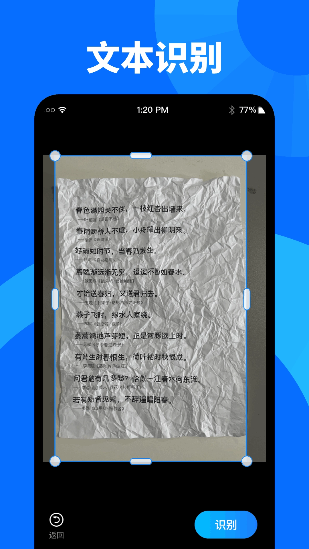 扫描即可提取您想要的文字信息,并支持扫描后文本的编辑、复制等其他操作。