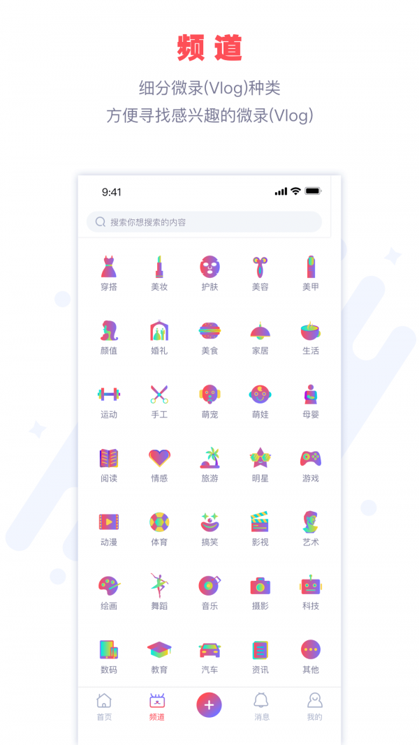 3.频道细分微录(Vlog)种类,方便寻找感兴趣的微录(Vlog)。