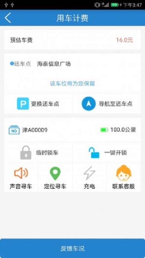 (1)使用起来非常的简单,用户只需要使用手机扫一扫就可以轻松的进行租车,而且在驾驶的过程中如需要临时锁车,也可以轻松的在线进行点击。
