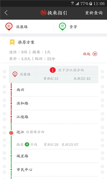 支持换乘方案查询功能,自动按照就近原则为用户推荐方案