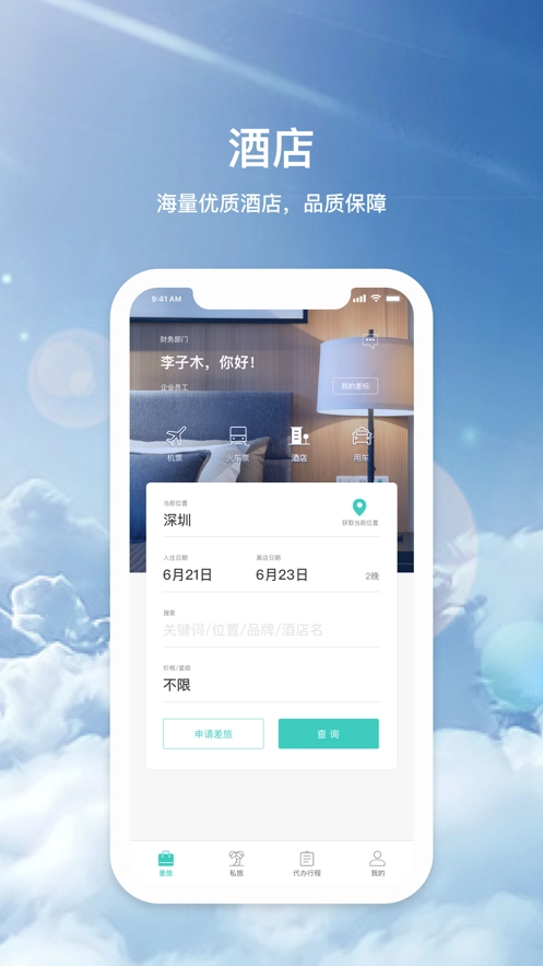 飞宿陆商旅是一款专门为用户们提供旅游服务的软件,软件内有非常多的旅游服务功能,包含酒店预定、机票预定、用车预定、差旅费用垫付等服务,全维度帮助处理差旅问题,让各大企业用户都能轻松出差,感受不一样的工作体验;支持批量订票,如果是团队出差,直接导入出差员工的身份信息,然后就可以在这里进行批量订票,非常的方便。快来下载试试吧!!
