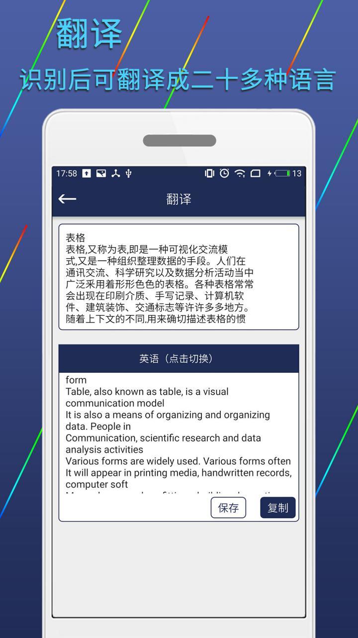 图片文字识别转换软件下载扫描一下即可识别,识别后支持一键翻译成各种语言,支持识别是多种语言文字,保存到手机或转发给好友哦。