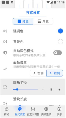 4、运行稳定的,不消耗手机电量的,随心所欲去定制自己的音量面板样式。