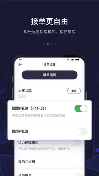 4、接单自由:接你想接,轻松设置接单模式,预约单、机场订单、绑定订单、特价单绑定等模式任你选择,还能设置回家模式,回家途中避免空驶,首汽约车更好保障您的利益。