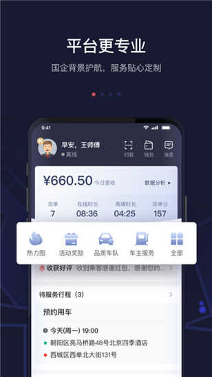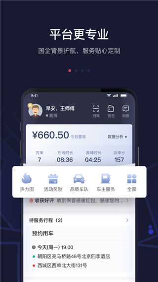1、服务专业:合规可靠,国企背景保驾护航,让车主在工作中拥有足够的安全感,放心接单。