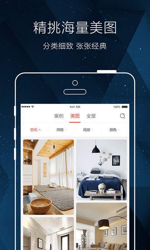 2.设置了装修公司,真实案例,精选美图,设计牛人,一键分享等各种丰富的功能。