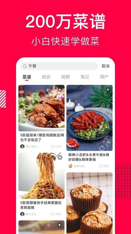 香哈菜谱app是一款菜谱教程app,中文菜谱大全,家常菜、视频菜谱、烘焙、儿童食谱、宝宝辅食、早餐食谱、孕妇食谱、厨房美食、川菜菜谱、粤菜菜谱、西餐、厨房做菜做饭美食菜谱等满足不同口味需求,每一种菜都有详细的图片教程,一个步骤一个步骤的教你,并且会有详细的用料说明晒美食,交朋友,吃货行踪全纪录。每天与百万美食用户共同分享精彩美食生活。