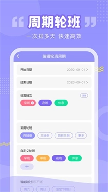 2、快速生成班次日历:软件提供快速生成班次日历的功能,用户可以通过简单的操作,快速生成自己的工作专属班次日历,方便查看和调整工作安排。