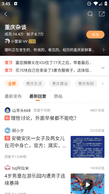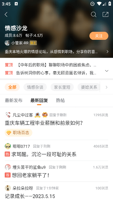 22个板块,包括娱乐八卦、时尚美颜、情感、重庆杂谈、买车用车等,总有一款适合你