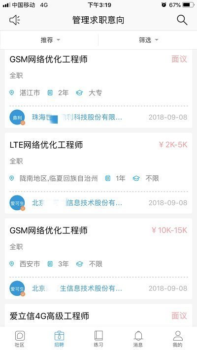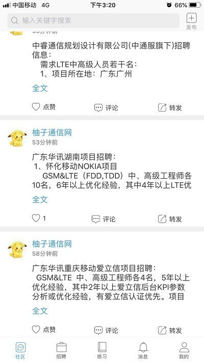 2.目前上线的招聘求职板块,海量职位精准匹配,实时推送,是移动互联网时代通信从业人员找工作的新选择
