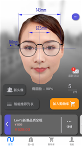 (1) 新镜介提供实时反馈功能,用户在虚拟试戴的过程中可以对着手机摄像头让应用实时判断是否戴得合适。