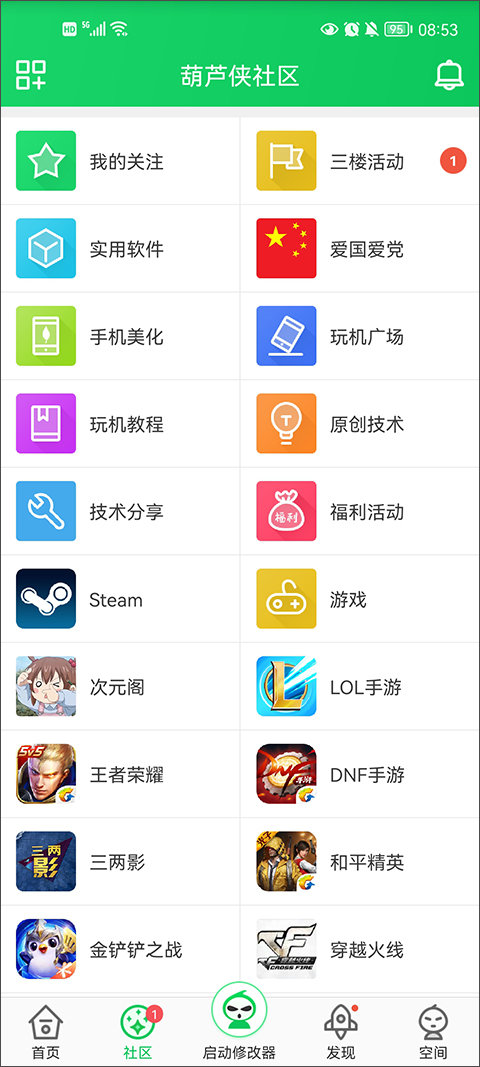 葫芦侠还为玩家们提供了一个好玩的玩机社区,拥有十余个不同的板块分区,包括王者荣耀、英雄联盟手游等板块,汇聚了百万热爱玩机的朋友,以健康积极的互联网侠客精神,彼此分享各种各样的好东西。在这里,你可以与其他玩家互动交流,分享游戏心得和技巧,还可以了解最新的游戏资讯和活动。葫芦侠app是一款功能强大、实用性高的游戏辅助工具,同时也是一个充满乐趣和互动的游戏社区,为广大玩家提供了全方位的游戏服务和交流平台。