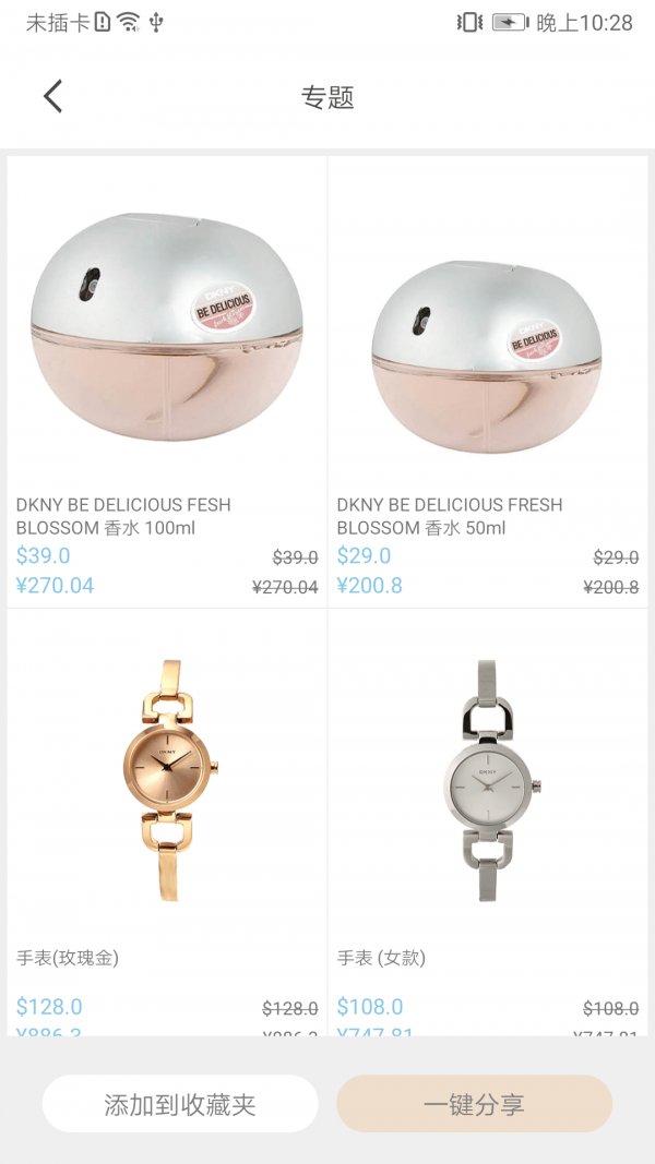 支持收藏和浏览历史功能,一键分享到朋友圈和微信群,可以分享整个品牌和单个产品;