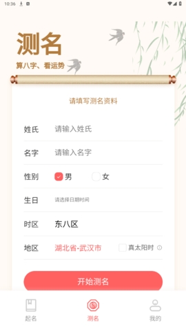 3、支持输入父母的姓名,快速匹配最佳的名字,让用户可以更精确地找到合适的名字。