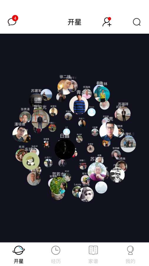 开星是一款可以查看家族族谱的软件支持添加各种成员信息,主要为个人用户或家族提供一个历史数据保存分享空间,这些用户都属于自己添加的好友,打通了家族关系好友之间的桥梁,在于用户能够进行编辑,通过这款软件能够让用户了解到自己家里的家族关系和家谱成员,快来本站下载吧。