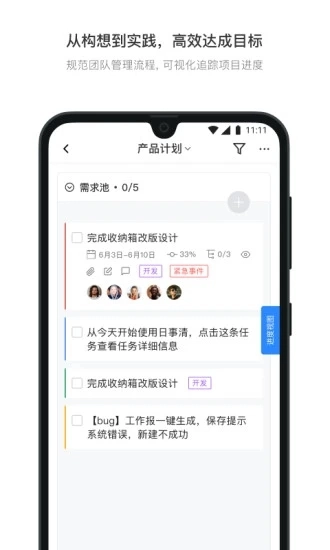 1、跟踪任务进度,实时讨论日程进展情况,沉淀工作数据,随时翻看查阅,让工作高效且有条理;