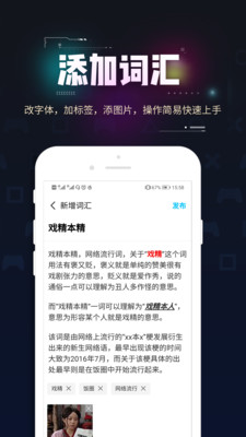 2.这个平台还为用户提供了一个发布词汇的功能,如果掌握到了一些新的词汇,都可以随时在这个平台里面进行发布。