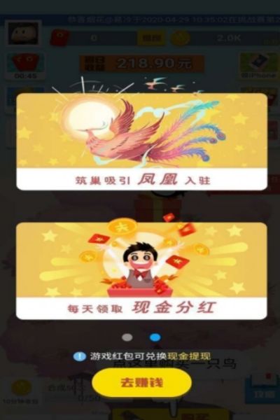 1.是新上线的合成养鸟赚收益软件,边玩游戏边赚收益,主题是合成小鸟,一步步升级;