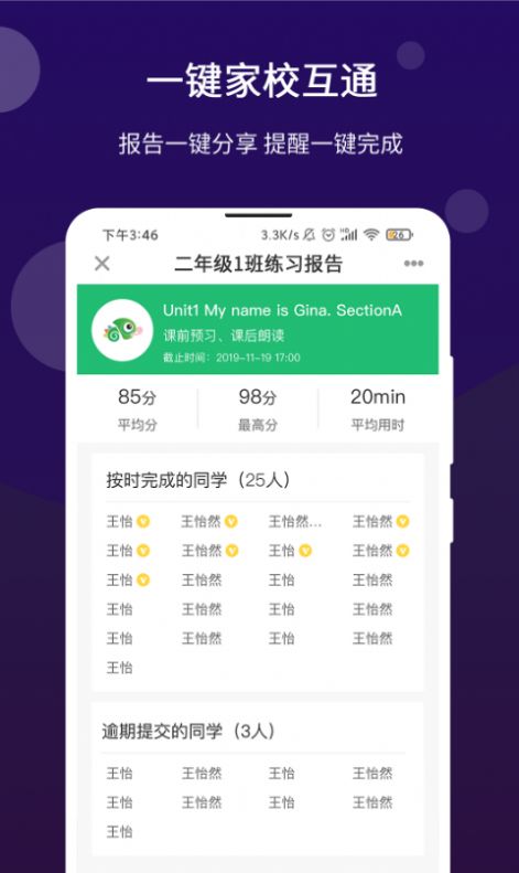 3、哪里有手机哪里就能管理班级学生信息,报告一键分享提醒一键完成