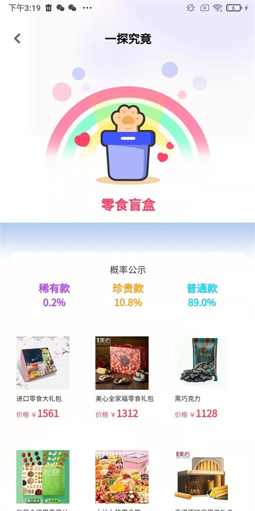 1、平台中有多种盲箱产品,用户可以根据自己的需要进行选择