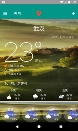 2、操作界面非常时尚优雅,同时准确的天气预报不会让淋雨尴尬,让你轻松安排自己的行程